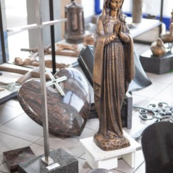 Zudem bietet unsere große Innen- und Außenausstellung eine große Auswahl in den verschiedensten Materialien und Formen. Das Grabmal ist der Ausdruck des Dankes und der Ehrfurcht, der Liebe und der Wertschätzung gegenüber dem Toten.